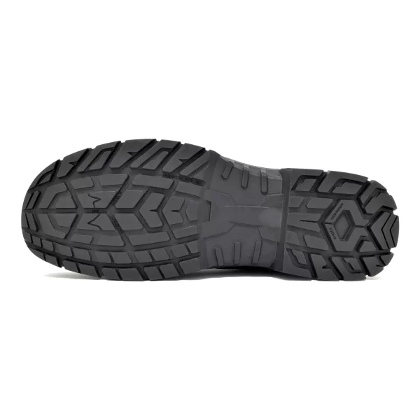 Calzatura alta nera in pelle pigmentata con sistema di sganciamento rapido. Puntale e lamina antiperforazione in acciaio e suola in poliuretano 1D in monodensità.