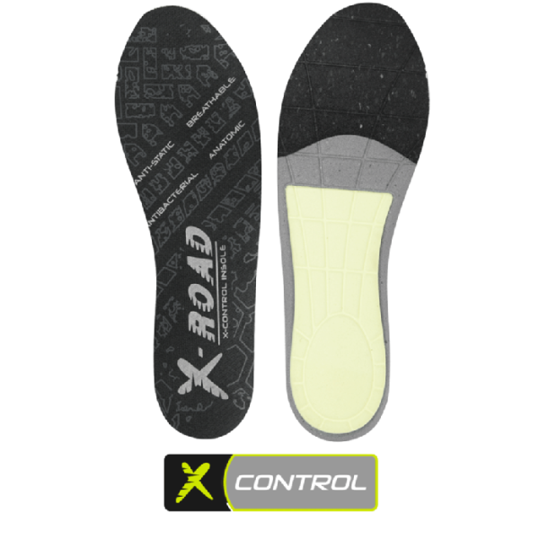 Il sottopiede X-CONTROL è stato realizzato seguendo attentamente la forma anatomica della pianta del piede, ottenendo una migliore e più uniforme distribuzione delle forze e del carico su tutto il corpo. L’appoggio totale del piede grazie a una pressione uniforme su tutti i terminali venosi soletta di Lejars o cuore periferico) consente il miglioramento del reflusso venoso aumentando ’ossigenazione del sangue e ne favorisce il defaticamento durante il lavoro.